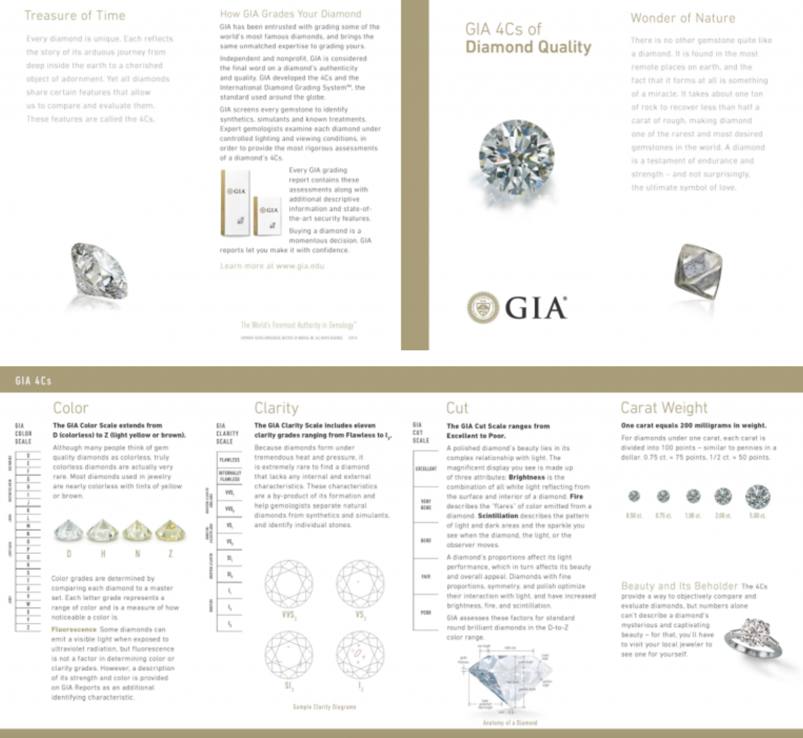 The Four C’s of diamond buying are: